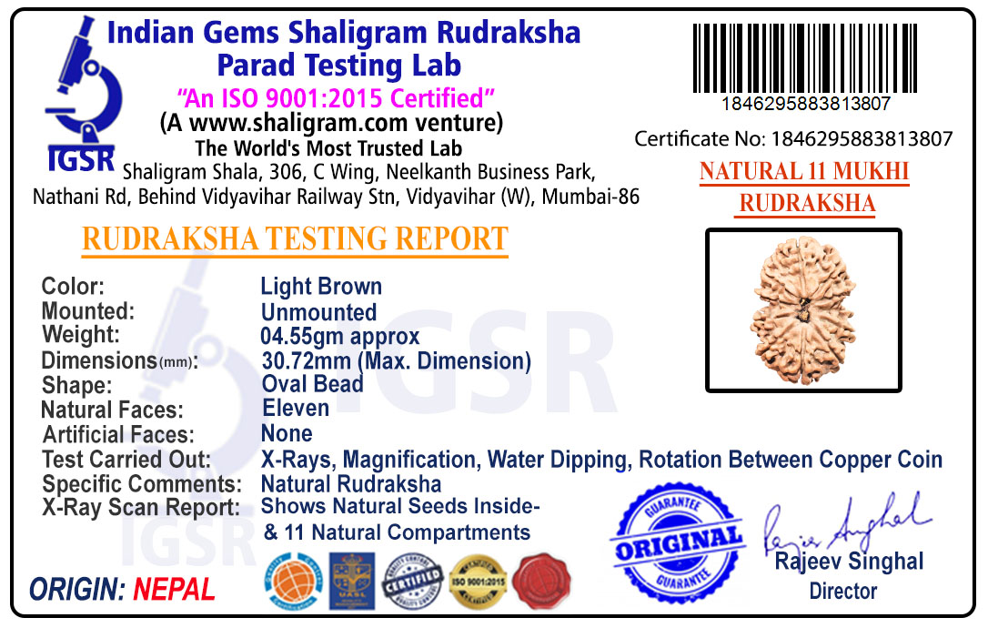11 Mukhi: Wisdom, Self Confidence and Aid to MeditationRuling God: The 11 Rudras
