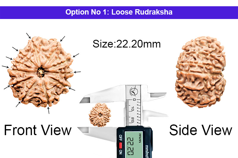 This Ekadasa Rudraksha connects the devotee with Harihara, Lord Shiva and Lord Vishnu. Hanuman is the greatest devotee of Lord Ram and this particular Rudraksha gives the blessings from both the Gods. This Rudraksha also blesses with all pleasures and happiness come to the man who worships Indra and makes him happy. It relieves the inmates from the fear of sudden death and thefts. This represents the 11th Rudra and the associated God of this Rudraksha is Lord Hanuman.