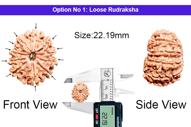 Eleven Mukhi Rudraksha represents Lord Hanuman which is Shiva (Eleven Rudras). This Rudraksha connects the devotee with Harihara, Lord Shiva and Lord Vishnu. Hanuman is the greatest devotee of Lord Ram and this particular Rudraksha gives the blessings from both the Gods. According to ancient texts, the fruit obtained after donating 100 cows is obtained instantaneously by wearing this bead. It helps in deep Meditation and yoga - sadhanas. 11 Mukhi Rudraksha gives extreme self-control of all senses and thus removes all kinds addictions. Lord Indra also rules this rudraksha. This rudraksha along with 10 Mukhi and 12 Mukhi Rudrakshas very commonly used to overcome all types of Vastu Doshas. This combination along with Panch Mukhi Shaligram Shilas if kept at an auspicious place inside the house, all ghosts, evil spirits, black magic, occults runs away from that place. For the devotees of Lord Shiva, it is the most effective and most successful Rudraksha.