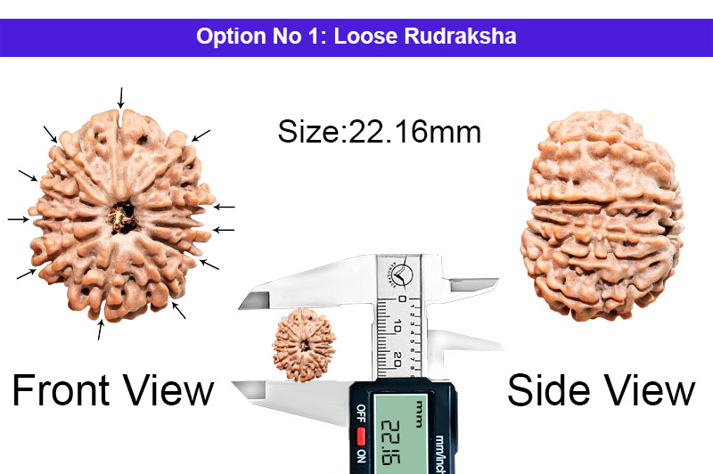 This Ekadasa Rudraksha connects the devotee with Harihara, Lord Shiva and Lord Vishnu. Hanuman is the greatest devotee of Lord Ram and this particular Rudraksha gives the blessings from both the Gods. This Rudraksha also blesses with all pleasures and happiness come to the man who worships Indra and makes him happy. It relieves the inmates from the fear of sudden death and thefts. This represents the 11th Rudra and the associated God of this Rudraksha is Lord Hanuman.
