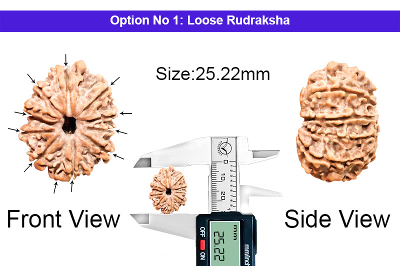 This Ekadasa Rudraksha connects the devotee with Harihara, Lord Shiva and Lord Vishnu. Hanuman is the greatest devotee of Lord Ram and this particular Rudraksha gives the blessings from both the Gods. This Rudraksha also blesses with all pleasures and happiness come to the man who worships Indra and makes him happy. It relieves the inmates from the fear of sudden death and thefts. This represents the 11th Rudra and the associated God of this Rudraksha is Lord Hanuman.