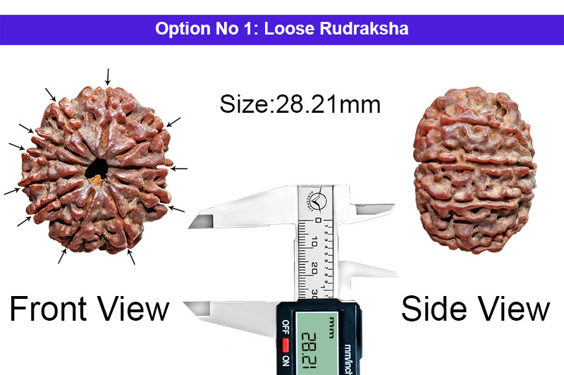 This Ekadasa Rudraksha connects the devotee with Harihara, Lord Shiva and Lord Vishnu. Hanuman is the greatest devotee of Lord Ram and this particular Rudraksha gives the blessings from both the Gods. This Rudraksha also blesses with all pleasures and happiness come to the man who worships Indra and makes him happy. It relieves the inmates from the fear of sudden death and thefts. This represents the 11th Rudra and the associated God of this Rudraksha is Lord Hanuman.