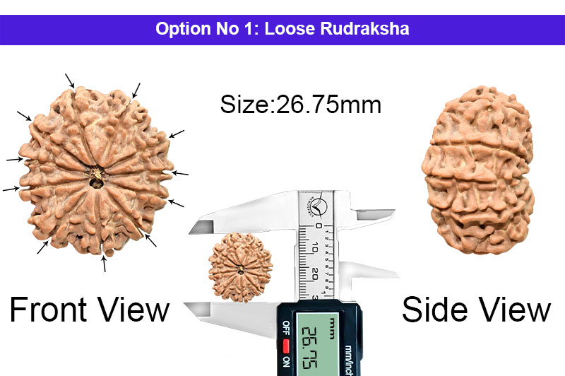 This Ekadasa Rudraksha connects the devotee with Harihara, Lord Shiva and Lord Vishnu. Hanuman is the greatest devotee of Lord Ram and this particular Rudraksha gives the blessings from both the Gods. This Rudraksha also blesses with all pleasures and happiness come to the man who worships Indra and makes him happy. It relieves the inmates from the fear of sudden death and thefts. This represents the 11th Rudra and the associated God of this Rudraksha is Lord Hanuman.
