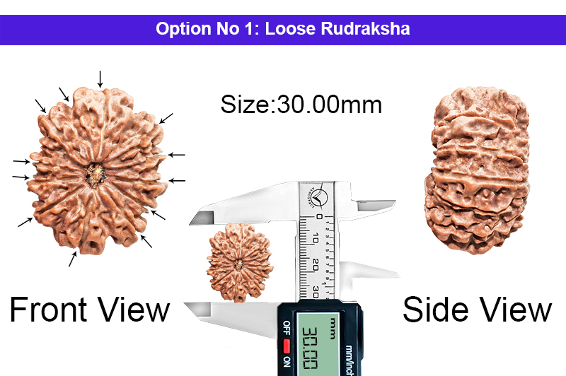 The 12 Mukhi Rudraksha bestows the inmates with immense dignity, respect, name and fame. This Rudraksha has a miraculous quality of extreme protection bestowed on the devotee and gives happiness and material gains and protection from sudden death and accidents. The Ruling Planet of 12 Mukhi Rudrakshas is Sun and it removes negativity, brings peace and the auspicious environment in the house and the workplace and protects the inmates from sudden accidents and thefts. It is also very good for the longevity of the inmates and controls Headache, Heart Disease, Skin Disease, Hiatus of Stomach and other related Problems. 12 Mukhi Rudraksha should be worn with 1 Mukhi, 3 Mukhi, 10 Mukhi, 14 Mukhi and 17 Mukhi Rudraksha to attain Dhyan yoga and Salvation and taking the business fame at the highest heights. This rudraksha balances Vishude, Manipurka and Swadisthana.