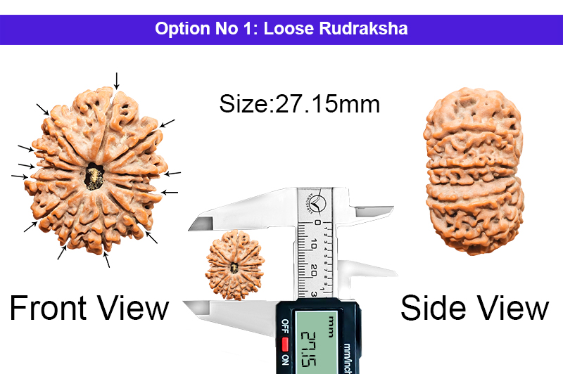 The 12 Mukhi Rudraksha bestows the inmates with immense dignity, respect, name and fame. This Rudraksha has a miraculous quality of extreme protection bestowed on the devotee and gives happiness and material gains and protection from sudden death and accidents. The Ruling Planet of 12 Mukhi Rudrakshas is Sun and it removes negativity, brings peace and the auspicious environment in the house and the workplace and protects the inmates from sudden accidents and thefts. It is also very good for the longevity of the inmates and controls Headache, Heart Disease, Skin Disease, Hiatus of Stomach and other related Problems. 12 Mukhi Rudraksha should be worn with 1 Mukhi, 3 Mukhi, 10 Mukhi, 14 Mukhi and 17 Mukhi Rudraksha to attain Dhyan yoga and Salvation and taking the business fame at the highest heights. This rudraksha balances Vishude, Manipurka and Swadisthana.