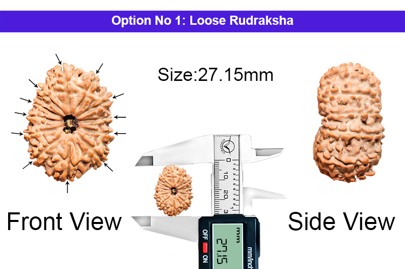 The 12 Mukhi Rudraksha bestows the inmates with immense dignity, respect, name and fame. This Rudraksha has a miraculous quality of extreme protection bestowed on the devotee and gives happiness and material gains and protection from sudden death and accidents. The Ruling Planet of 12 Mukhi Rudrakshas is Sun and it removes negativity, brings peace and the auspicious environment in the house and the workplace and protects the inmates from sudden accidents and thefts. It is also very good for the longevity of the inmates and controls Headache, Heart Disease, Skin Disease, Hiatus of Stomach and other related Problems. 12 Mukhi Rudraksha should be worn with 1 Mukhi, 3 Mukhi, 10 Mukhi, 14 Mukhi and 17 Mukhi Rudraksha to attain Dhyan yoga and Salvation and taking the business fame at the highest heights. This rudraksha balances Vishude, Manipurka and Swadisthana.