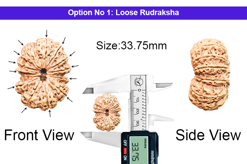 13 Mukhi Rudraksha is Lord Indra and Lord Kamadeva Rudraksha and controls the planet, Venus. The God of love Lord Kuber not only gives the wearer immense strength and vigour but also fulfils all worldly desires of the devotee. This Rudraksha gives immense attraction, high confidence levels, strong determination, extra-strong will power and blesses him with immense success. He excelled and succeed in toughest endeavours and challenges which other competitors do not venture into and emerge out to be victorious. 13 Mukhi Lord Indra Rudraksha gives riches, honour, dignity, respect, accomplishments and fulfils all the earthly desires. This 13 Mukhi Kamdev Rudraksha gives hypnotic power of attraction (Vashikaran) to the wearer which makes the wearer in getting praises from all levels and the wearer rises to the topmost position in any field. Apart from this rudraksha is extremely helpful in doing meditation, astral travel, cosmic, spiritual and transcendence attainments. Normally the mantra of this Maha Rudraksha is pronounced wrong.