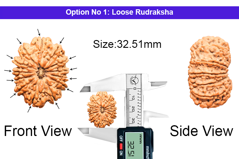 13 Mukhi Rudraksha is Lord Indra and Lord Kamadeva Rudraksha and controls the planet, Venus. The God of love Lord Kuber not only gives the wearer immense strength and vigour but also fulfils all worldly desires of the devotee. This Rudraksha gives immense attraction, high confidence levels, strong determination, extra-strong will power and blesses him with immense success. He excelled and succeed in toughest endeavours and challenges which other competitors do not venture into and emerge out to be victorious. 13 Mukhi Lord Indra Rudraksha gives riches, honour, dignity, respect, accomplishments and fulfils all the earthly desires. This 13 Mukhi Kamdev Rudraksha gives hypnotic power of attraction (Vashikaran) to the wearer which makes the wearer in getting praises from all levels and the wearer rises to the topmost position in any field. Apart from this rudraksha is extremely helpful in doing meditation, astral travel, cosmic, spiritual and transcendence attainments. Normally the mantra of this Maha Rudraksha is pronounced wrong.