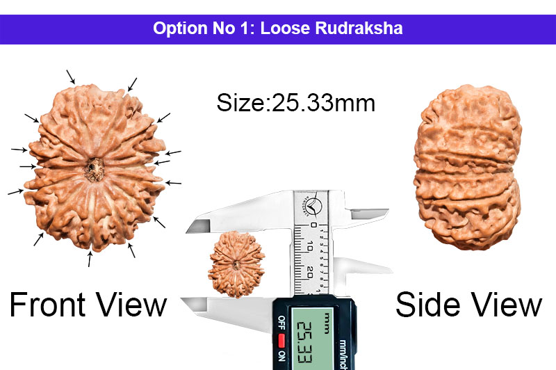 This 14 Mukhi Rudraksha bead is extremely good for meditation and astral travel. There is a misconception, that school-going children cannot wear 14 Mukhi Rudraksha, which is not correct. Several experiments conducted on high IQ, medium IQ and low IQ children by Shaligram.com has clearly indicated that students have jumped to higher IQ after wearing of 14 Mukhi Rudraksha for around 40 days. Therefore Shaligram.com strongly recommends the 14 Mukhi Rudrakshas for the students for all the age group and especially who wants to excel in studies. The 14 Mukhi Rudraksha is strongly recommended to be worn on the chest, forehead or right arm. This Rudraksha along with Golden Shivalinga Shaligram and 12 Mukhi, 13 Mukhi and 15 Mukhi if kept at North East or East direction brings very strong intuitive strength to the devotee. Immense prosperity, extreme protection and peaceful environment prevails in the devotee house and the workplace who wears 14 Mukhi Rudraksha.