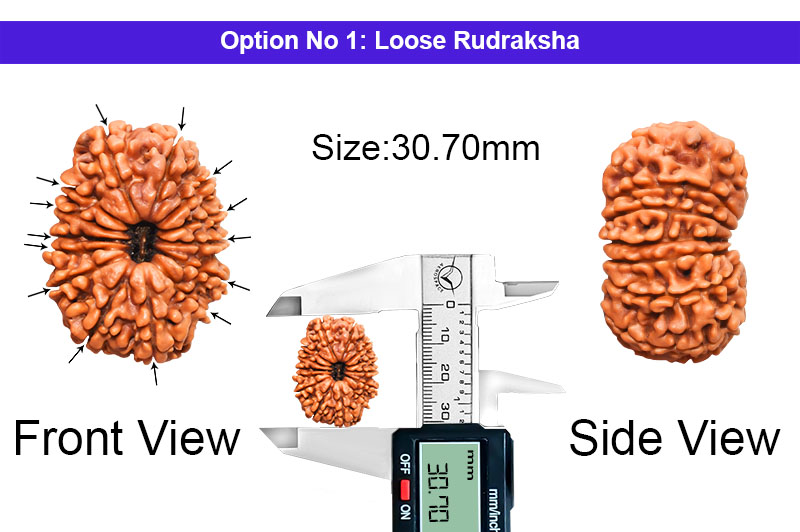 This 14 Mukhi Rudraksha bead is extremely good for meditation and astral travel. There is a misconception, that school-going children cannot wear 14 Mukhi Rudraksha, which is not correct. Several experiments conducted on high IQ, medium IQ and low IQ children by Shaligram.com has clearly indicated that students have jumped to higher IQ after wearing of 14 Mukhi Rudraksha for around 40 days. Therefore Shaligram.com strongly recommends the 14 Mukhi Rudrakshas for the students for all the age group and especially who wants to excel in studies. The 14 Mukhi Rudraksha is strongly recommended to be worn on the chest, forehead or right arm. This Rudraksha along with Golden Shivalinga Shaligram and 12 Mukhi, 13 Mukhi and 15 Mukhi if kept at North East or East direction brings very strong intuitive strength to the devotee. Immense prosperity, extreme protection and peaceful environment prevails in the devotee house and the workplace who wears 14 Mukhi Rudraksha.