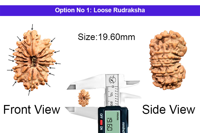 14 Mukhi is one of the most powerful Rudrakshas which is also known as supreme Rudraksh. The wearer gets all protection from negative energies and gets blessings of Rudra, Param Shiva, Hanuman. The Mantra of 14 Mukhi Rudraksha Om Namah Shivaya. The ruling planet of 14 Mukhi Rudraksha is Mars and Saturn. The wearer can open his Ajna or Agneya Chakra by wearing this Rudraksha on his forehead (placing the Rudraksha in between the eyebrows). Lord Hanuman rules 14 Mukhi rudraksha. It awakens the Ajna Chakra of the devotee and thereby empowering his sixth sense organ to the highest degree by which the wearer foresees the future happenings.