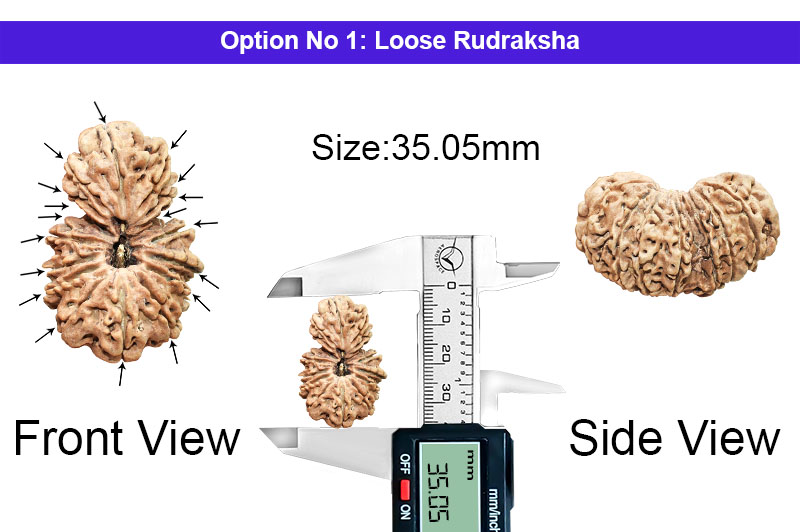Eighteen Mukhi Rudraksha is a powerful and stronger rudraksha that belongs to the goddess earth. The Beeja Mantra of 18 Mukhi Rudraksha is Om Hreeng Shreeng Vasudhaye Swaha. Eighteen Mukhi Rudraksha has the wearing mantra too which is Om Hreeng Hoong Ektatva Rupe Hoong Hreeng Om helps in many problems and issues in life. It has Eighteen powers which protects the wearer from all kinds of evils and problems. It removes the laziness and excessive sleep from the wearer of this Rudraksha. This auspicious bead helps in Ayurveda, chemical process, cloths etc. It gives all kinds of Bhoga (comforts and leisure) to the wearer. It removes all kinds of sins and liberates the wearer in the end of life. It also helps in attaining all kinds of attainments.
