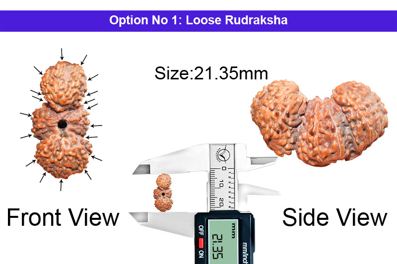 Three naturally joined Rudrakshas are a rare phenomenon of nature and such a bead is called "Tribhagi" or "Trijuti". This bead is also known as "Gauri Paath" and represents "Brahma Vishnu Mahesh" (The Trinity of God). In the Trijuti Rudraksha three beads individually represent Lord Brahma, Lord Vishnu and Lord Mahesh. It is very powerful to give universal appeal and empowers the wearer for great achievements, confidence and makes the wearer invincible. This bead blesses the devotee with tremendous Charisma, attraction and removes all hurdles to facilitate the path of success and contentment to the devotee.Trijuti Rudraksha Mantra