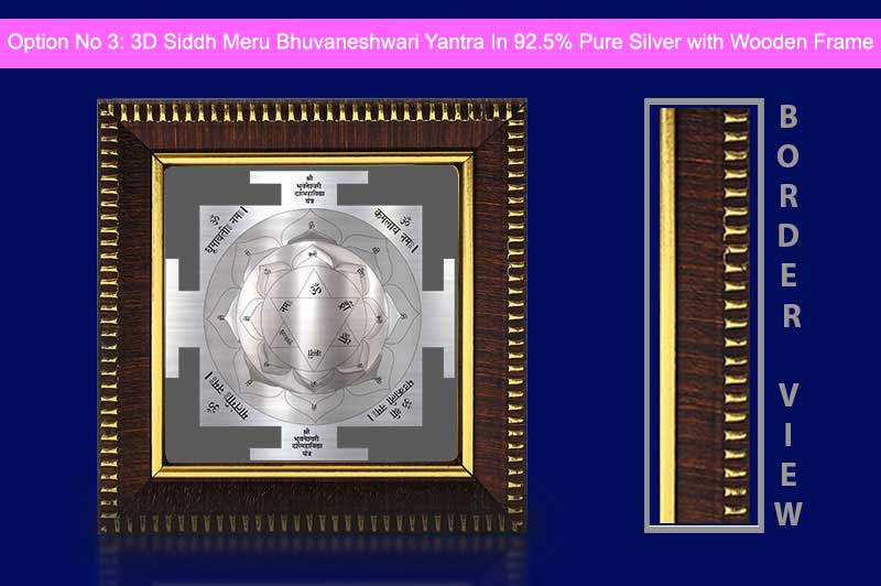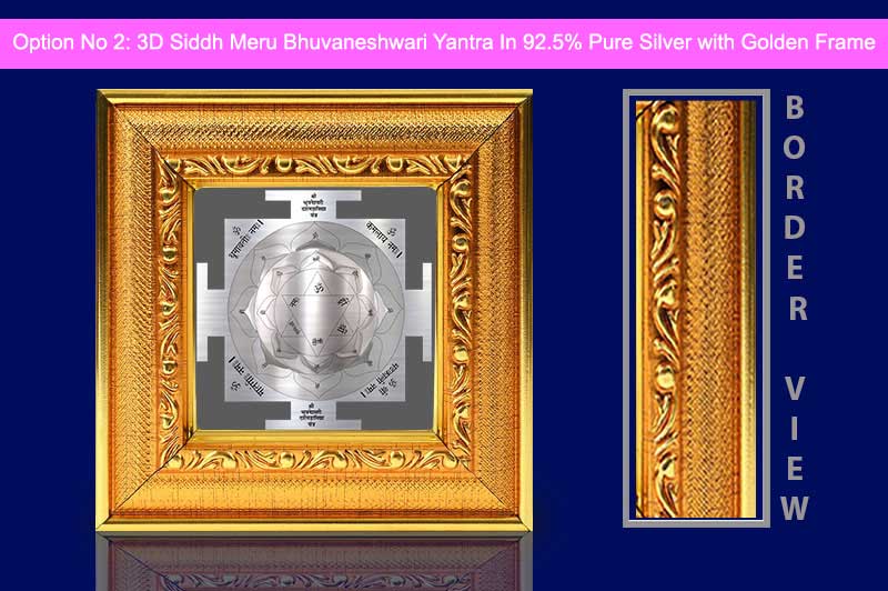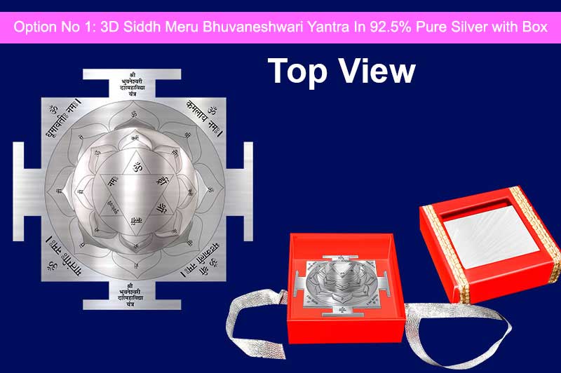 Powerful 3D Siddh Meru Bhuvaneshwari DusMahavidya Yantra is accurately designed as according to historical scriptures with best geometry. This 3D Yantra resonates the divine energies of Goddess Bhuvaneshwari. She is one the Mahavidya (information Goddess), Who personifies victory in all realms of life, electricity and comfort from all troubles of existence. Presence of 3d Buvaneshwari Yantra removes obstacles and gives courage, confidence, sensitivity, sense of responsibility and emotional maturity. The yantra products are delivered to the customers after proper energization & pran pratishtha. Therefore all the devotees are requested to forward their date, time & place of birth while ordering Bhuvaneshwari Yantra, so that the proper energization & pran pratishtha could be done on their names before the dispatch of the product.