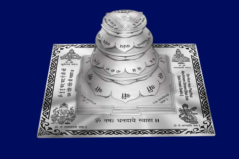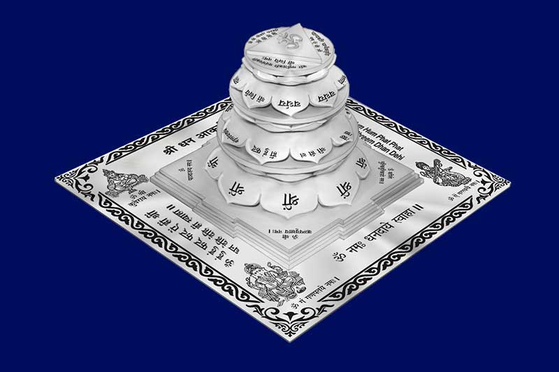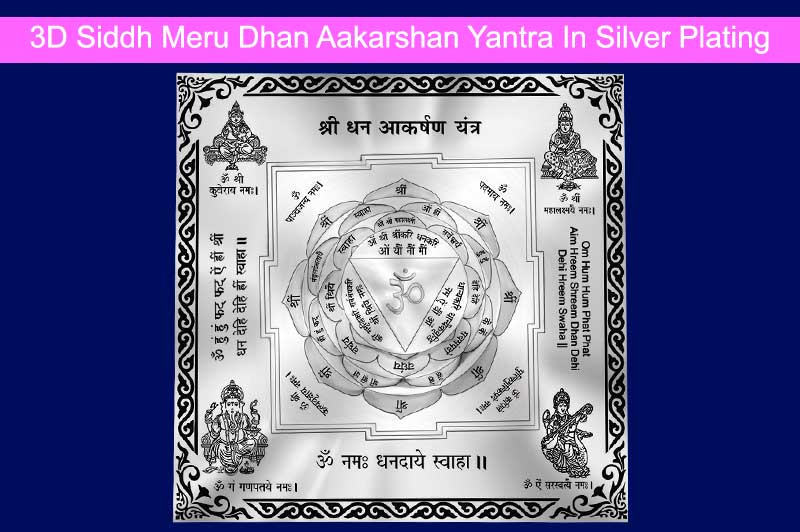 The 3D Siddh Meru Dhan Akarshan Yantra on Double Lotus is made of ashtadhatu with silver plating. The phrase akarshan means to attract, so this Yantra is to often attract wealth and abundance. The Yantra is a device that enables to energise the location where it is placed. The Siddh Meru Dhan Akarshan Yantra on Lotus is perfectly crafted and is blessed with the Divine energies of Goddess Mahalaxmi, Lord Ganesha, Goddess Saraswati and Kuber. Powered through the double pressure of the Yantra and the Divine Gods and Goddesses associated with it, this Yantra turns into best for every residence and commercial enterprise/ office space. The blessings of 3D Double Lotus Dhan Akarshan Yantra brings money, wealth, prosperity, good success, new opportunities, accumulation of wealth and gets rid of boundaries from the route to be blessed with effective final results. The yantra products are delivered to the customers after proper energization & pran pratishtha. Therefore all the devotees are requested to forward their date, time & place of birth while ordering Dhan Akarshan Yantra, so that the proper energization & pran pratishtha could be done on their names before the dispatch of the product.