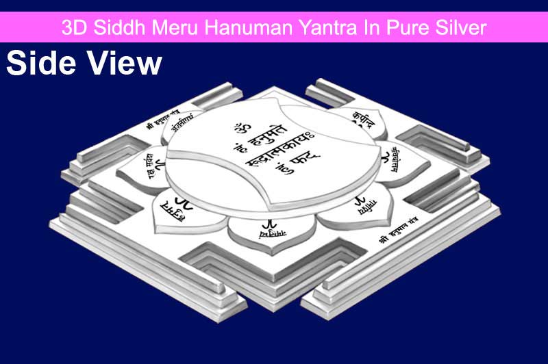 3D Siddh Meru Hanuman Yantra In Pure Silver with Laser Printed-YTSMHNM021-S