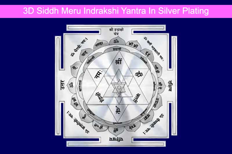 3D Siddh Meru Indrakshi Yantra on Double Lotus Laser Printed In Silver Plating-YTDLIDK111