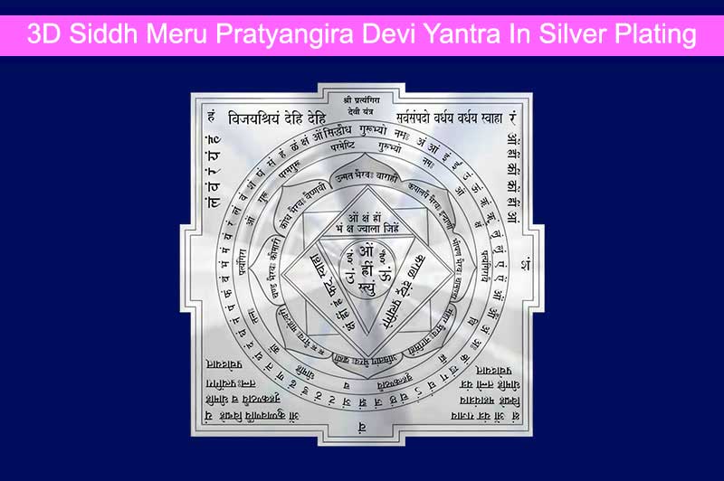 Worshipping 3D Siddh Meru Pratyangira Devi Yantra on Double Lotus is beneficial for protects the devotees against all odds and guides him/ her along the right path. Presence of this divine yantra help to eliminate the influences of evil forces. It also gives liberation and devotional service. Pratyangira Devi Yantra is a very powerful yantra for destroying negative karmas and removing black magic. It enhances the will power, self-confidence and self-esteem. The yantra products are delivered to the customers after proper energization & pran pratishtha. Therefore all the devotees are requested to forward their date, time & place of birth while ordering Yantra, so that the proper energization & pran pratishtha could be done on their names before the dispatch of the product.