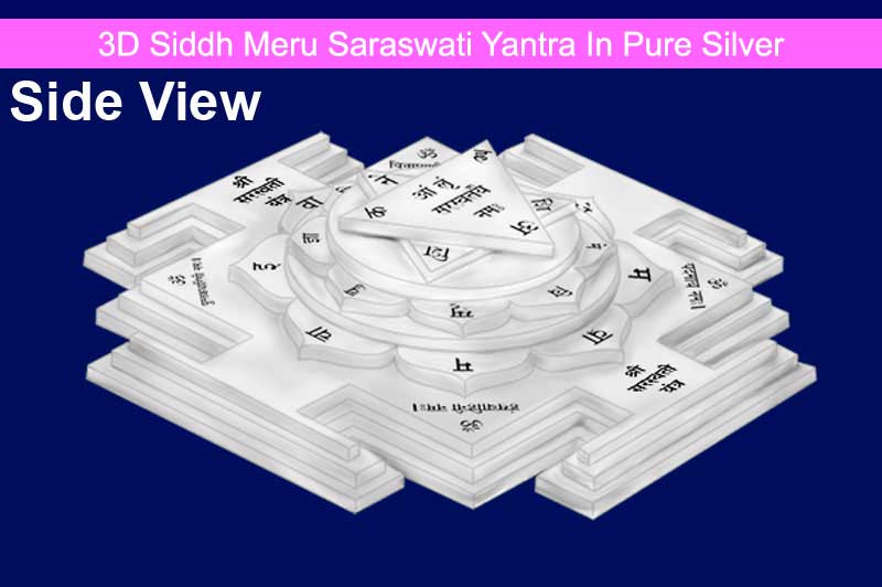 3D Siddh Meru Saraswati Yantra In Pure Silver with Laser Printed-YTSMSRW021-S
