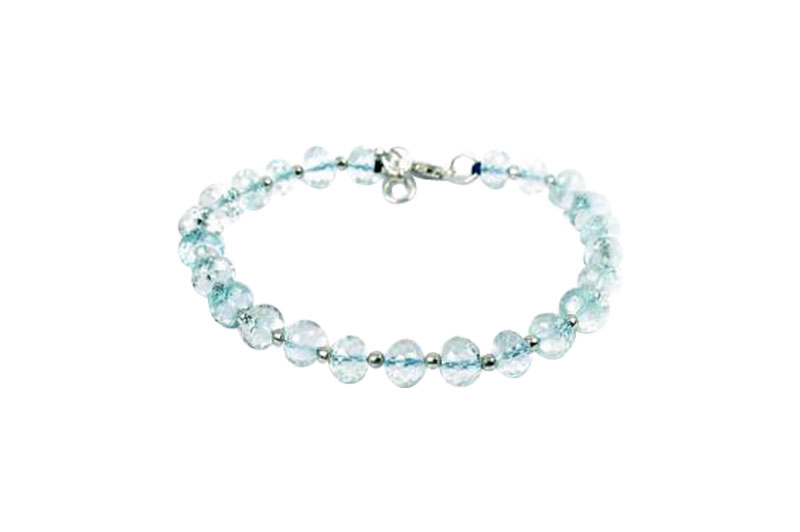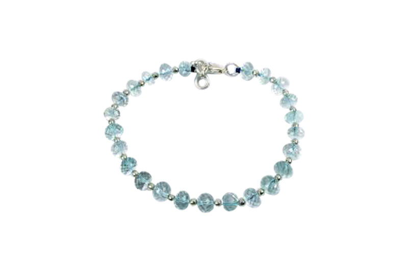 Aquamarine Button Shape Bracelet with Silver Balls(Faceted Beads)-GMBRAM001