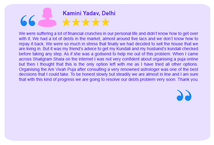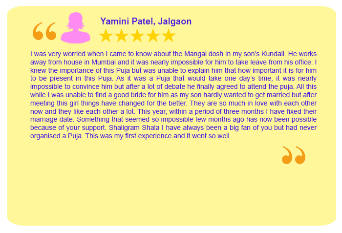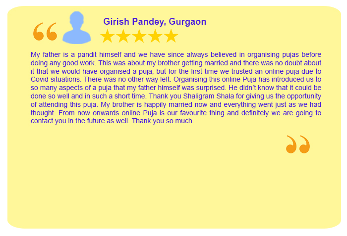 Each Puja Sankalpa has been taken elaborately by Sh. Rajeev Krishna (founder of shaligram.com) in English and Hindi so that devotees amply clear that for what purpose the particular puja is being conducted. One instruction sheet is sent wherein all the instructions are written in detail which are the number of priests, number of chants, Sankalpa, mantra, etc. Mr Rajeev Krishna can be contacted at 9322646420 / 9322646421 for listening to the Sankalpa. He will also briefly discuss your horoscope and guide you in the best possible way.