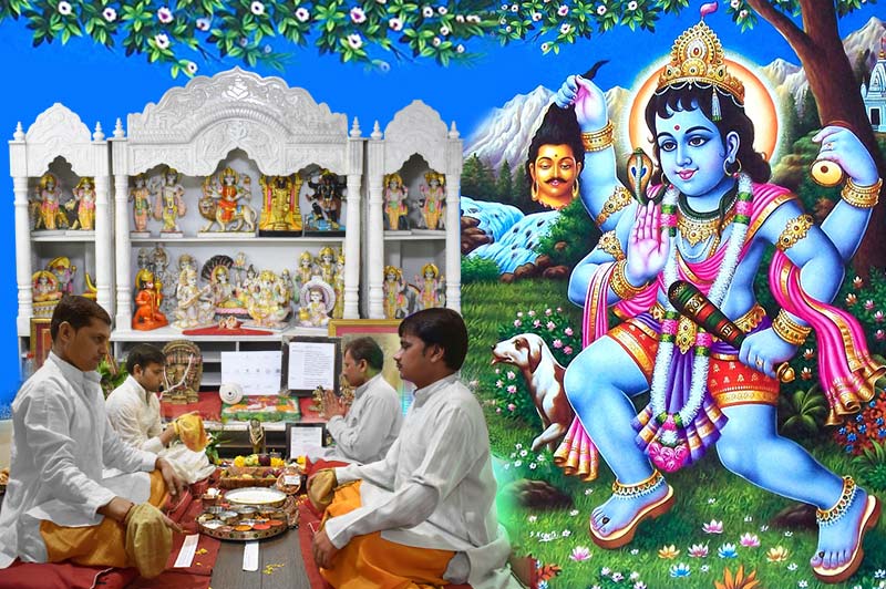 Bhairav Puja by Shaligram Shala Puja & Yagna Services includes Kalash Sthapana, Panchang Sthapana(Gauri Ganesh, Punyavachan, Shodash Matrika, Navgraha, Sarvotabhadra), 64 yogini Pujan, Shetrapal Pujan, Swasti Vachan, Sankalpa, Ganesh Pujan and Abhishek, Navgraha Pujan and 108 chants of each planetary mantra, Invocation of major Gods and Goddesses in Kalash, Yantra Puja, chants of Mantra, Havan, Aarti, Pushpaanjali and Brahmin Bhojan.