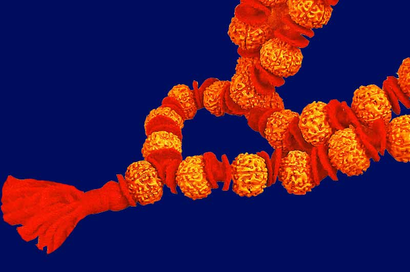 As per Shiva Purana the Rudrakshas can be worn in the form of bracelet, armlet, locket and mala (rosary). Rudrakshas can be worn by using thread along with copper, silver & gold caps or it can be worn in complete silver & gold capping joined with silver or gold wire.