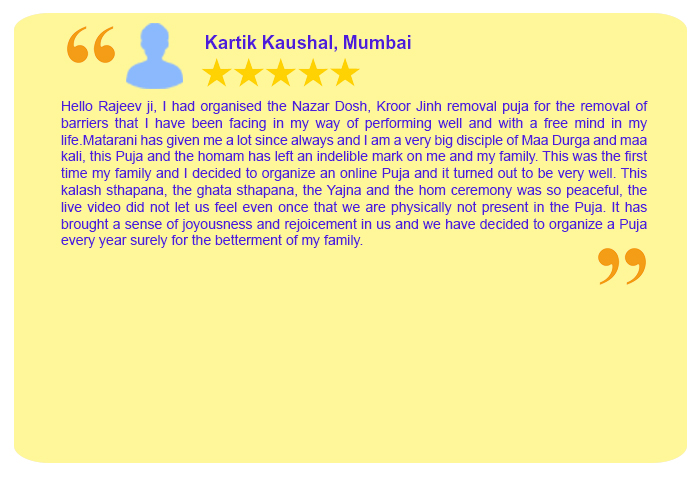 Each Puja Sankalpa has been taken elaborately by Sh. Rajeev Krishna (founder of shaligram.com) in English and Hindi so that devotees amply clear that for what purpose the particular puja is being conducted. One instruction sheet is sent wherein all the instructions are written in detail which are the number of priests, number of chants, Sankalpa, mantra, etc. Mr Rajeev Krishna can be contacted at 9322646420 / 9322646421 for listening to the Sankalpa. He will also briefly discuss your horoscope and guide you in the best possible way.