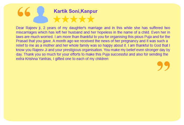 - Performing this customized pooja bestows a Virtuous Son with Divya Siddhies and Qualities of an Emperor.