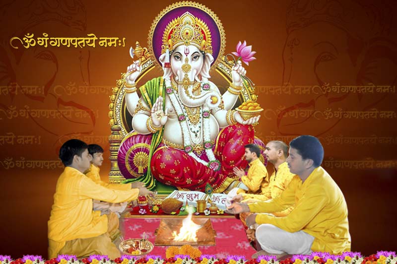 Ganapati Atharvashirsha by Shaligram Shala Puja & Yagna Services includes Kalash Sthapana, Panchang Sthapana(Gauri Ganesh, Punyavachan, Shodash Matrika, Navgraha, Sarvotabhadra), 64 yogini Pujan, Shetrapal Pujan, Swasti Vachan, Sankalpa, Ganesh Pujan and Abhishek, Navgraha Pujan and 108 chants of each planetary mantra, Invocation of major Gods and Goddesses in Kalash, Yantra Puja, chants of Mantra, Havan, Aarti, Pushpaanjali and Brahmin Bhojan.