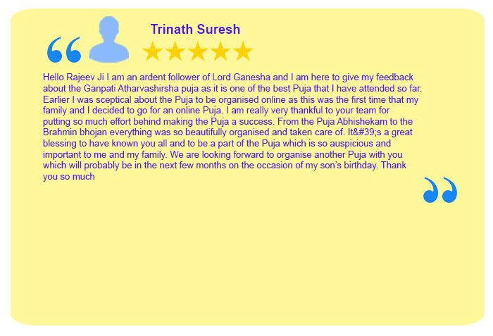 - Mr Rajeev Krishna takes puja Sankalpa on the behalf of the devotee before starting puja by either connecting with the devotee on WhatsApp or the recorded Sankalpa is sent to devotee by WhatsApp after the Sankalpa is taken but while the puja is still in progress.