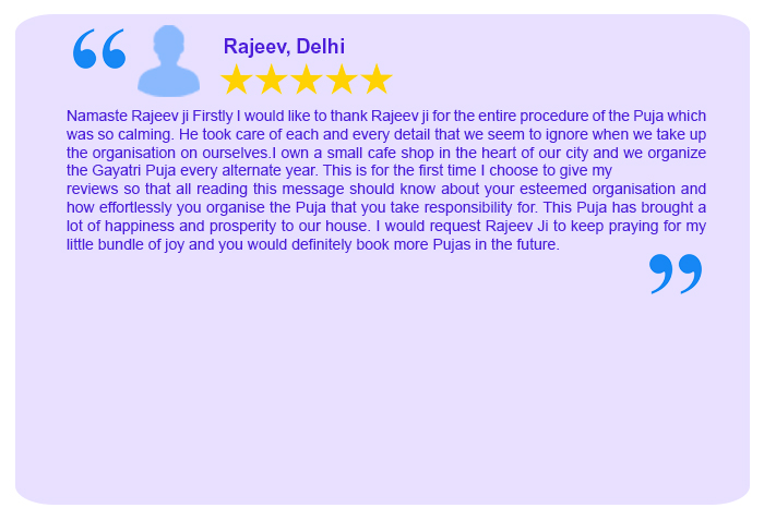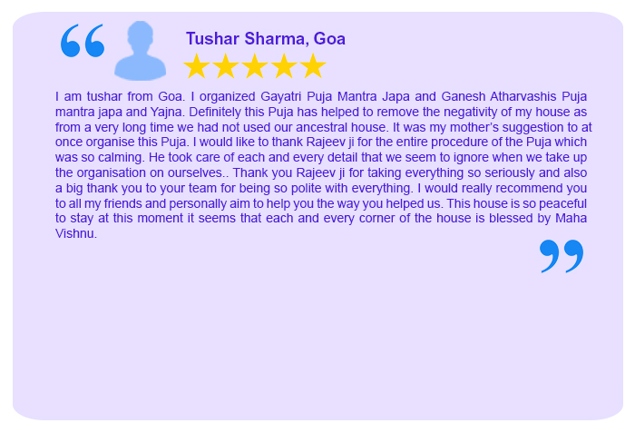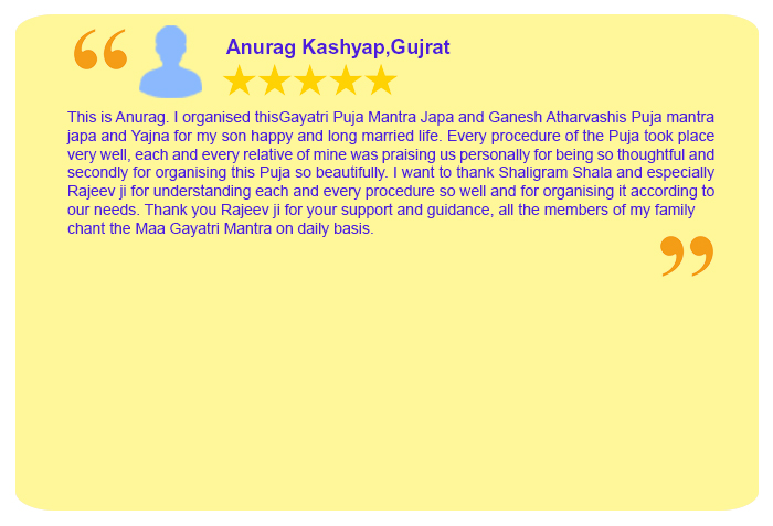 Each Puja Sankalpa has been taken elaborately by Sh. Rajeev Krishna (founder of shaligram.com) in English and Hindi so that devotees amply clear that for what purpose the particular puja is being conducted. One instruction sheet is sent wherein all the instructions are written in detail which are the number of priests, number of chants, Sankalpa, mantra, etc. Mr Rajeev Krishna can be contacted at 9322646420 / 9322646421 for listening to the Sankalpa. He will also briefly discuss your horoscope and guide you in the best possible way.
