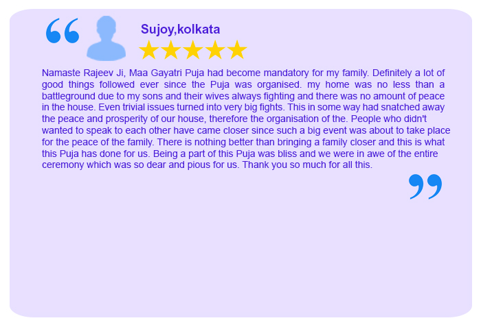 Gayatri are mentioned in the Atharvaveda. Performing this puja creates a protective shield around the seeker and protects him during times of suffering.