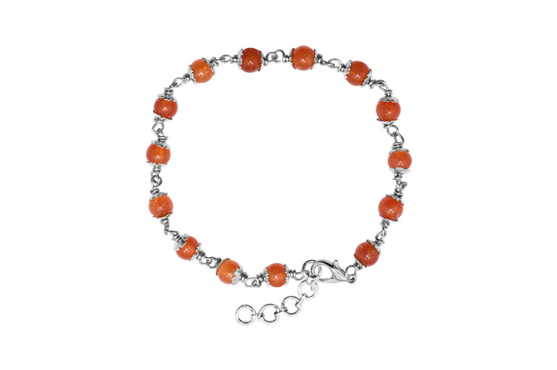 Gomed Bracelet In Pure Silver Flower Caps-6mm-GMBRGM005
