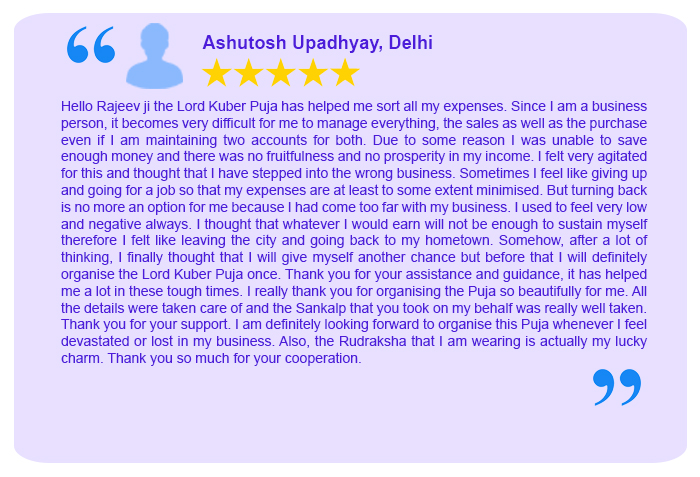 Those who are devoted to Kuber and perform this puja with diligence and concentration shall not have any shortage of money. The Kuber Puja bless an individual with wealth and prosperity and shall remove the debts crisis. If anyone chanting this mantra with evil, selfish and greedy purpose shall disprove the very purpose of this mantra and invite the wrath of Kuber. Lord Kuber is God of wealth and bestows fortunes and prosperity to the worshiper. If you want to gain success in your initiative Kuber Puja is an effective way. This puja serves as an important tool that ensures blessings for your business and keeps different negativities at bay. People who want success in their business and prosperity for a lifetime can benefit from this puja. Many entrepreneurs consider this Puja as the key to their success.