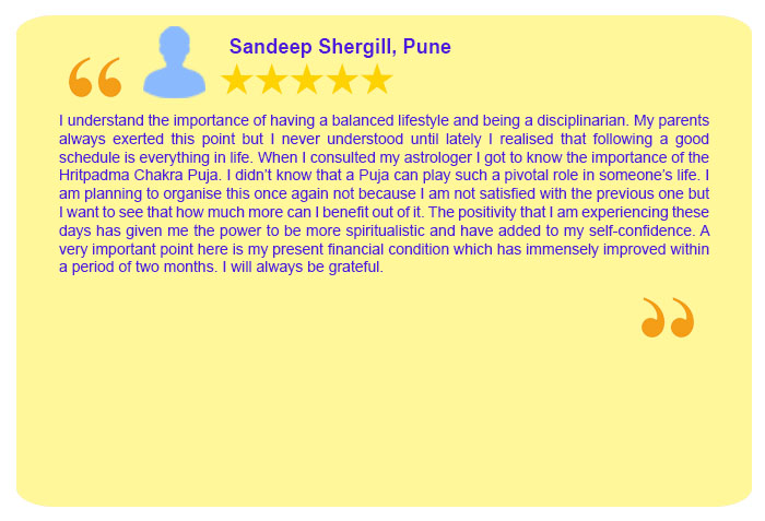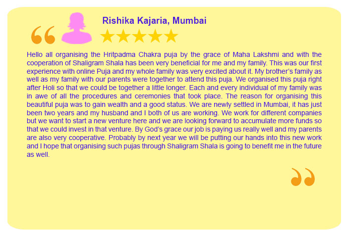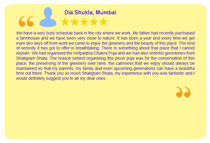 Each Puja Sankalpa has been taken elaborately by Sh. Rajeev Krishna (founder of shaligram.com) in English and Hindi so that devotees amply clear that for what purpose the particular puja is being conducted. One instruction sheet is sent wherein all the instructions are written in detail which are the number of priests, number of chants, Sankalpa, mantra, etc. Mr Rajeev Krishna can be contacted at 9322646420 / 9322646421 for listening to the Sankalpa. He will also briefly discuss your horoscope and guide you in the best possible way.How do you ensure that puja is really done for you or not?
