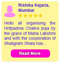 If the above Puja & Yagna is performed along with the following items, the power of Puja increases manifolds times more. If you buy any of these items, we shall energize that item during your puja so that these will give you very good results. We will energize and also do Abhimantram of that item.Chakra - Hritpadma Chakra is balanced by performing this puja. Chakra is seven centers of religious energy in the human body. Chakras are the circular vortexes of power that are situated in seven different points on the spinal column, and all the seven chakras are related to the different organs and glands within the body. These chakras are responsible for disturbing life energy.
