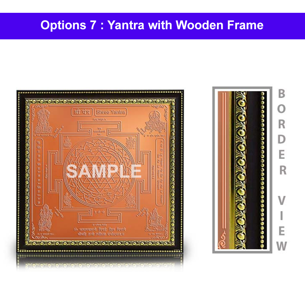 The Yantra products are delivered to the customers after proper energization & pran pratishtha. Therefore all the devotees are requested to forward their date, time & place of birth while ordering yantra, so that the proper energization & pran pratishtha could be done on their names before the dispatch of the Yantra.