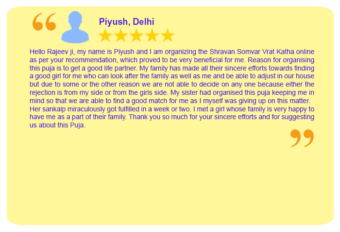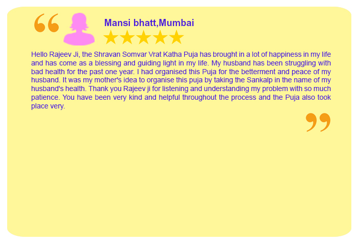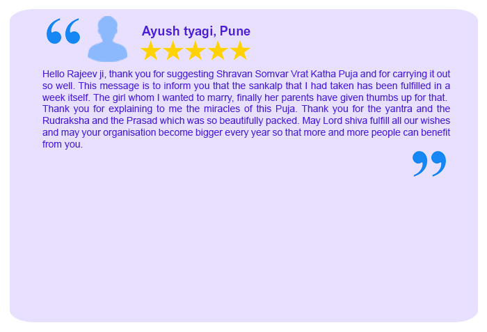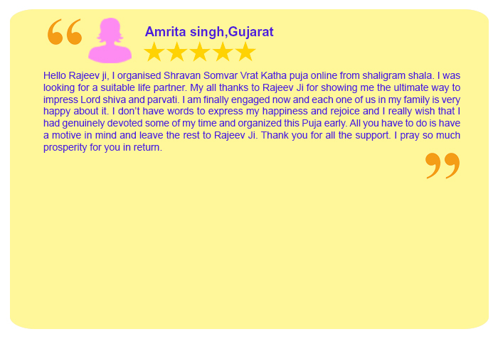 Each Puja Sankalpa has been taken elaborately by Sh. Rajeev Krishna (founder of shaligram.com) in English and Hindi so that devotees amply clear that for what purpose the particular puja is being conducted. One instruction sheet is sent wherein all the instructions are written in detail which are the number of priests, number of chants, Sankalpa, mantra, etc. Mr Rajeev Krishna can be contacted at 9322646420 / 9322646421 for listening to the Sankalpa. He will also briefly discuss your horoscope and guide you in the best possible way.