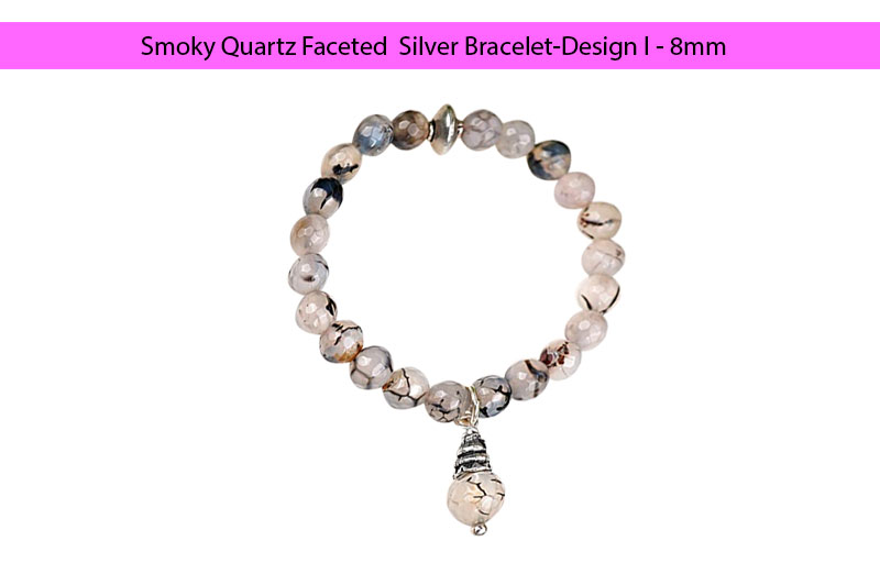 Smoky Quartz Faceted Silver Bracelet-Design - I - 8mm-GMBRSQ003