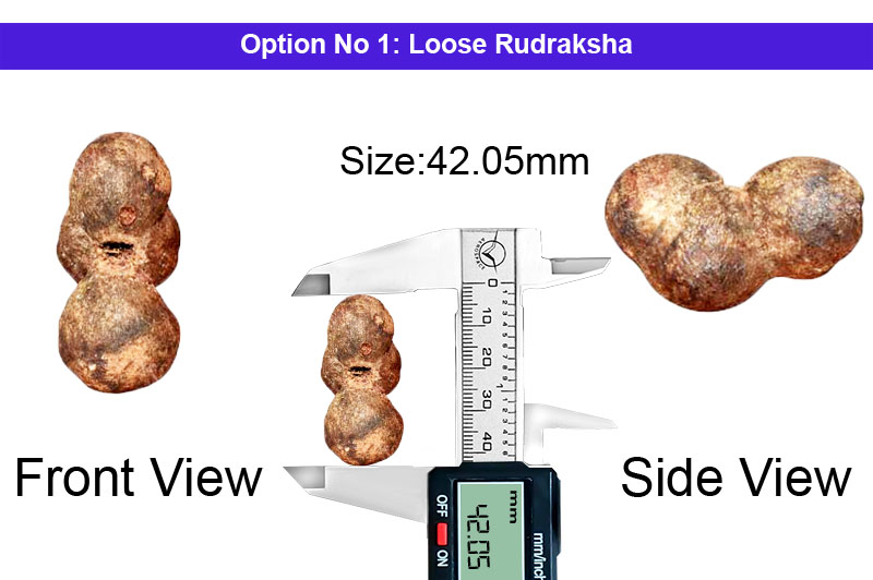 Three naturally joined Rudrakshas are a rare phenomenon of nature and such a bead is called "Tribhagi" or "Trijuti". This bead is also known as "Gauri Paath" and represents "Brahma Vishnu Mahesh" (The Trinity of God). In the Trijuti Rudraksha three beads individually represent Lord Brahma, Lord Vishnu and Lord Mahesh. It is very powerful to give universal appeal and empowers the wearer for great achievements, confidence and makes the wearer invincible. This bead blesses the devotee with tremendous Charisma, attraction and removes all hurdles to facilitate the path of success and contentment to the devotee.Trijuti Rudraksha Mantra
