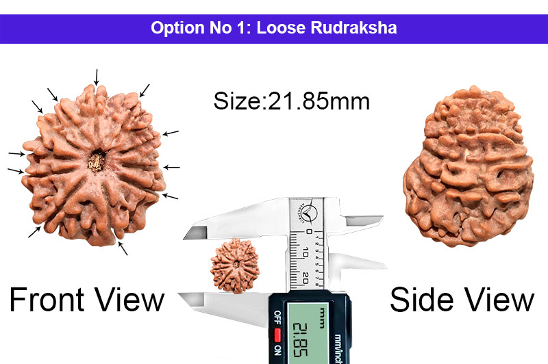 This Ekadasa Rudraksha connects the devotee with Harihara, Lord Shiva and Lord Vishnu. Hanuman is the greatest devotee of Lord Ram and this particular Rudraksha gives the blessings from both the Gods. This Rudraksha also blesses with all pleasures and happiness come to the man who worships Indra and makes him happy. It relieves the inmates from the fear of sudden death and thefts. This represents the 11th Rudra and the associated God of this Rudraksha is Lord Hanuman.