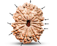 Eleven Mukhi Rudraksha represents Lord Hanuman which is Shiva (Eleven Rudras). This Rudraksha connects the devotee with Harihara, Lord Shiva and Lord Vishnu. Hanuman is the greatest devotee of Lord Ram and this particular Rudraksha gives the blessings from both the Gods. According to ancient texts, the fruit obtained after donating 100 cows is obtained instantaneously by wearing this bead. It helps in deep Meditation and yoga - sadhanas. 11 Mukhi Rudraksha gives extreme self-control of all senses and thus removes all kinds addictions. Lord Indra also rules this rudraksha. This rudraksha along with 10 Mukhi and 12 Mukhi Rudrakshas very commonly used to overcome all types of Vastu Doshas. This combination along with Panch Mukhi Shaligram Shilas if kept at an auspicious place inside the house, all ghosts, evil spirits, black magic, occults runs away from that place. For the devotees of Lord Shiva, it is the most effective and most successful Rudraksha.