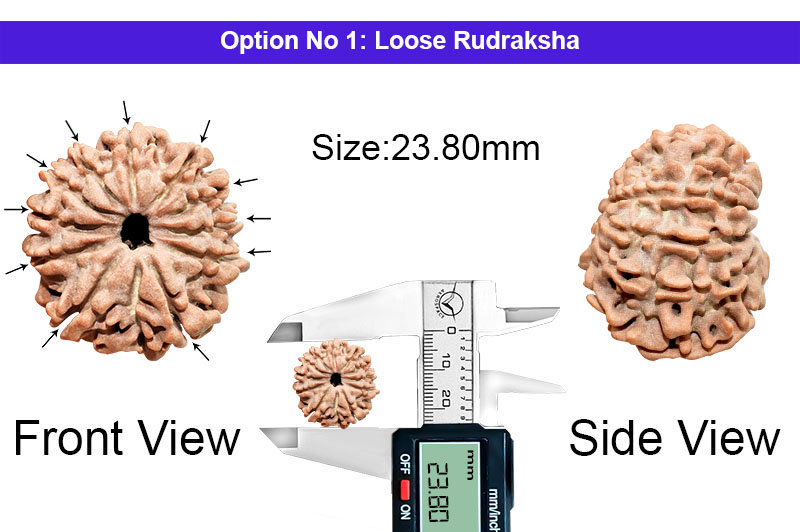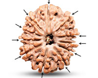 Eleven Mukhi Rudraksha represents Lord Hanuman which is Shiva (Eleven Rudras). This Rudraksha connects the devotee with Harihara, Lord Shiva and Lord Vishnu. Hanuman is the greatest devotee of Lord Ram and this particular Rudraksha gives the blessings from both the Gods. According to ancient texts, the fruit obtained after donating 100 cows is obtained instantaneously by wearing this bead. It helps in deep Meditation and yoga - sadhanas. 11 Mukhi Rudraksha gives extreme self-control of all senses and thus removes all kinds addictions. Lord Indra also rules this rudraksha. This rudraksha along with 10 Mukhi and 12 Mukhi Rudrakshas very commonly used to overcome all types of Vastu Doshas. This combination along with Panch Mukhi Shaligram Shilas if kept at an auspicious place inside the house, all ghosts, evil spirits, black magic, occults runs away from that place. For the devotees of Lord Shiva, it is the most effective and most successful Rudraksha.
