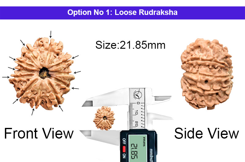 This Ekadasa Rudraksha connects the devotee with Harihara, Lord Shiva and Lord Vishnu. Hanuman is the greatest devotee of Lord Ram and this particular Rudraksha gives the blessings from both the Gods. This Rudraksha also blesses with all pleasures and happiness come to the man who worships Indra and makes him happy. It relieves the inmates from the fear of sudden death and thefts. This represents the 11th Rudra and the associated God of this Rudraksha is Lord Hanuman.