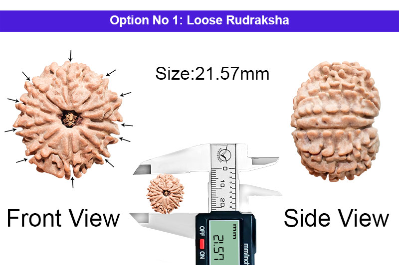 This Ekadasa Rudraksha connects the devotee with Harihara, Lord Shiva and Lord Vishnu. Hanuman is the greatest devotee of Lord Ram and this particular Rudraksha gives the blessings from both the Gods. This Rudraksha also blesses with all pleasures and happiness come to the man who worships Indra and makes him happy. It relieves the inmates from the fear of sudden death and thefts. This represents the 11th Rudra and the associated God of this Rudraksha is Lord Hanuman.