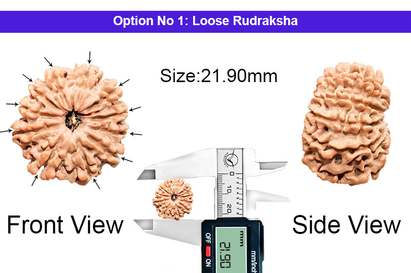 This Ekadasa Rudraksha connects the devotee with Harihara, Lord Shiva and Lord Vishnu. Hanuman is the greatest devotee of Lord Ram and this particular Rudraksha gives the blessings from both the Gods. This Rudraksha also blesses with all pleasures and happiness come to the man who worships Indra and makes him happy. It relieves the inmates from the fear of sudden death and thefts. This represents the 11th Rudra and the associated God of this Rudraksha is Lord Hanuman.