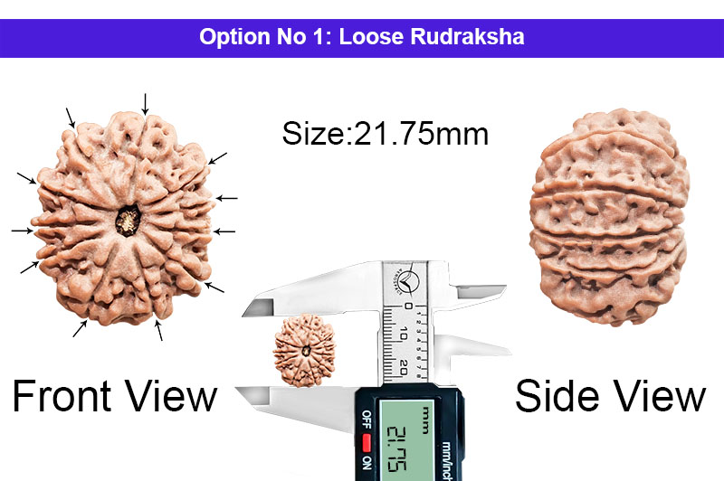 This Ekadasa Rudraksha connects the devotee with Harihara, Lord Shiva and Lord Vishnu. Hanuman is the greatest devotee of Lord Ram and this particular Rudraksha gives the blessings from both the Gods. This Rudraksha also blesses with all pleasures and happiness come to the man who worships Indra and makes him happy. It relieves the inmates from the fear of sudden death and thefts. This represents the 11th Rudra and the associated God of this Rudraksha is Lord Hanuman.