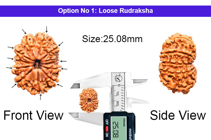 This Ekadasa Rudraksha connects the devotee with Harihara, Lord Shiva and Lord Vishnu. Hanuman is the greatest devotee of Lord Ram and this particular Rudraksha gives the blessings from both the Gods. This Rudraksha also blesses with all pleasures and happiness come to the man who worships Indra and makes him happy. It relieves the inmates from the fear of sudden death and thefts. This represents the 11th Rudra and the associated God of this Rudraksha is Lord Hanuman.