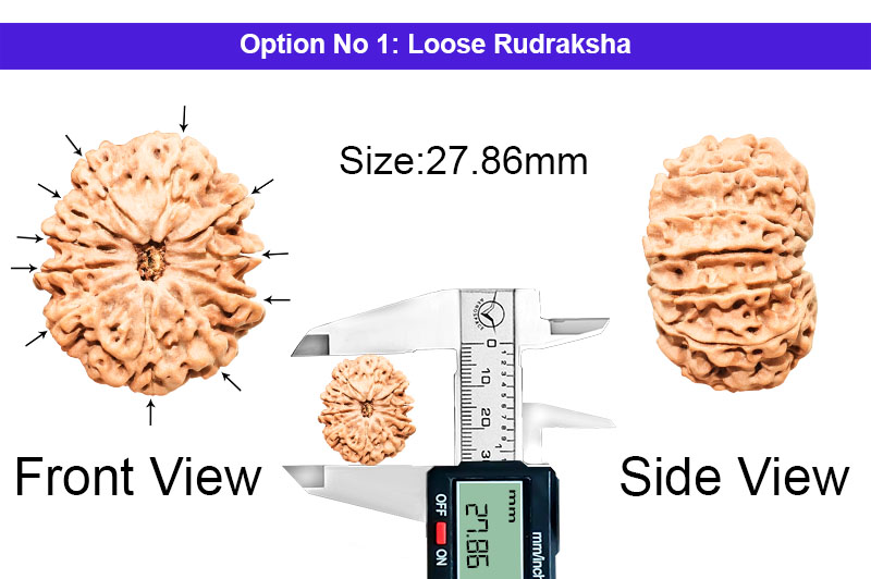 This Ekadasa Rudraksha connects the devotee with Harihara, Lord Shiva and Lord Vishnu. Hanuman is the greatest devotee of Lord Ram and this particular Rudraksha gives the blessings from both the Gods. This Rudraksha also blesses with all pleasures and happiness come to the man who worships Indra and makes him happy. It relieves the inmates from the fear of sudden death and thefts. This represents the 11th Rudra and the associated God of this Rudraksha is Lord Hanuman.